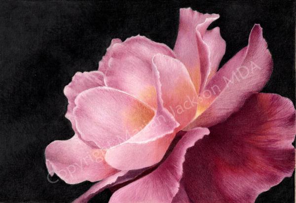 A beautifully detailed rose with a painted black background. A study in value and temperature.